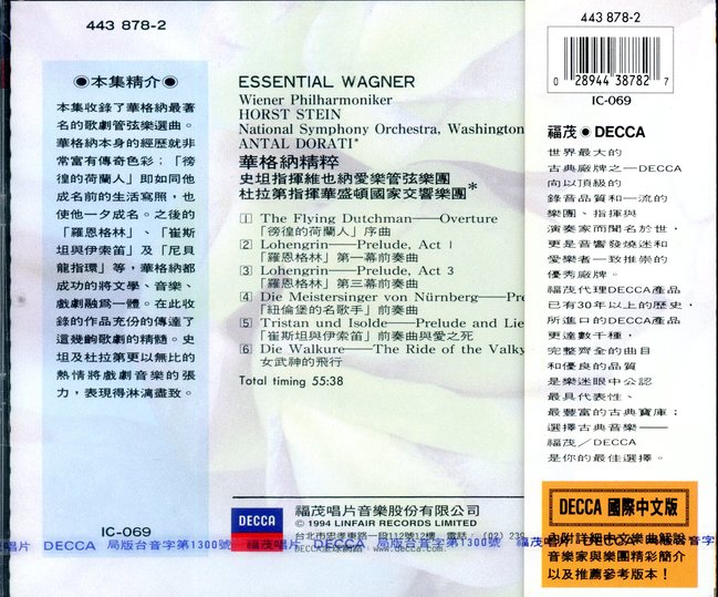 華格納精粹:女武神的飛行、「徬徨的荷蘭人」序曲、「羅恩格林」第一&第三幕前奏曲、「紐倫堡的名歌手」前奏曲(國際中文版69)