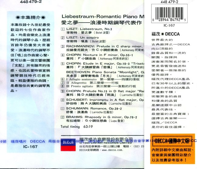 浪漫時期鋼琴代表作 - 愛之夢、嘆息、夜曲、浪漫曲、月光、雨滴、悲傷、狂想曲、前奏曲、即興曲(國際中文版167)
