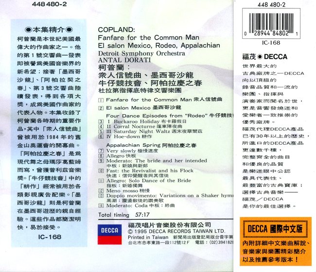 柯普蘭:眾人信號曲、墨西哥沙龍、阿帕拉契之春、牛仔競技會、舞誦交響曲(國際中文版168)