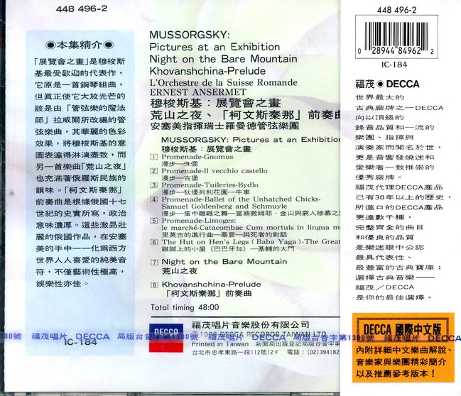 穆索斯基:展覽會之畫、荒山之夜、「柯文斯秦那」前奏曲(國際中文版184)