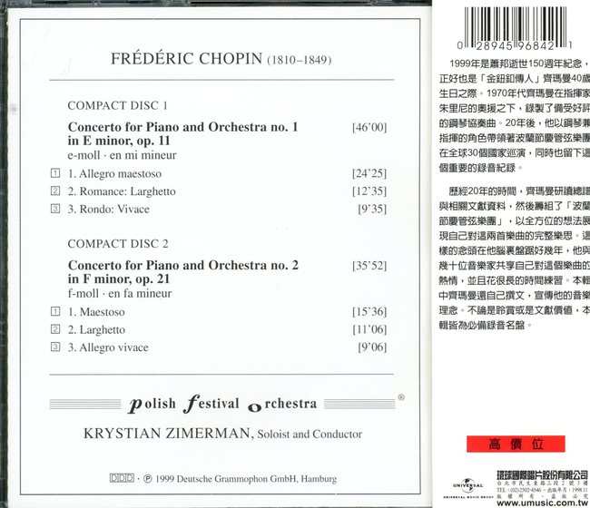 蕭邦 : 第一、二 號鋼琴協奏曲 (2CD)/Chopin : Piano Concertos Nos. 1 &2 (2CD)