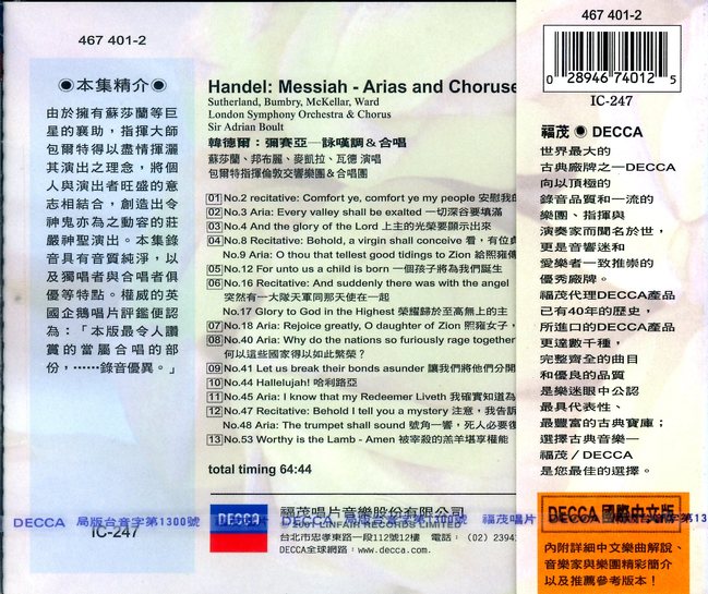 韓德爾:彌賽亞—詠嘆調&合唱(國際中文版247)