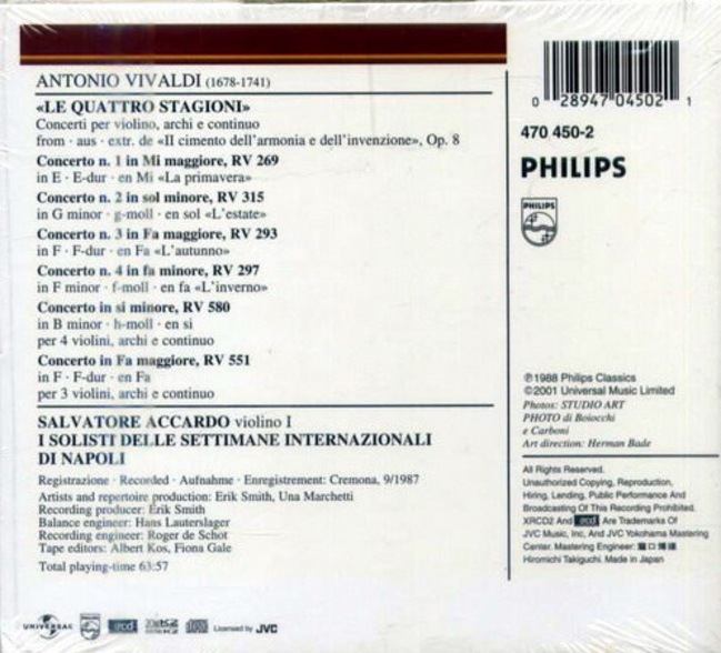 Vivaldi : The Four Seasons , 2 Concertos (XRCD)