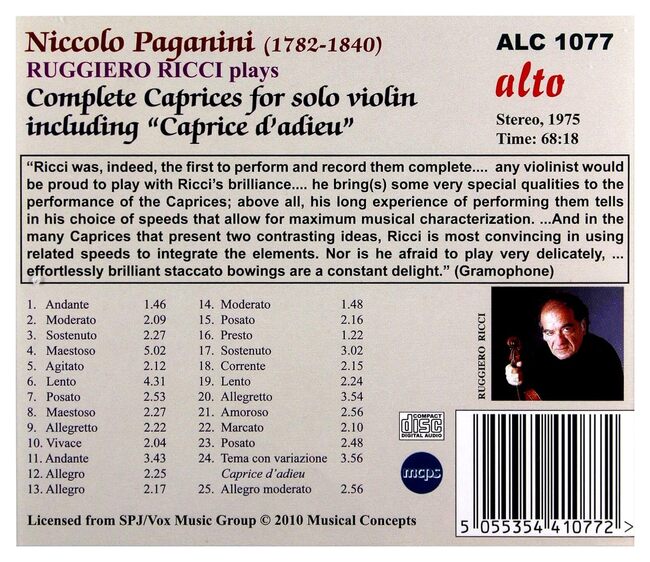 Ruggiero Ricci Plays Paganini (Complete Caprices for Solo Violin)