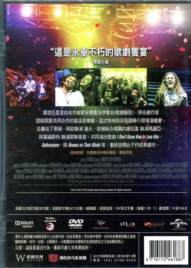 萬世巨星是由名作曲家安德魯洛伊韋伯(Andrew Lloyd Webber),與名劇作家提姆萊斯(Tim Rice)共同合作的搖滾音樂劇。這次回到英國拍攝這部經典的現場巡迴演唱會。巨星雲集了包括蒂姆·明欽飾演 猶大,前辣妹合唱團的媚兒喜 飾演瑪麗亞,與賓福斯特 飾演耶穌基督。演出歌曲I Don’t Know How to Love Him、Gethsemane、與Heaven on Their Minds等,共同重新詮釋此不朽經典劇作。