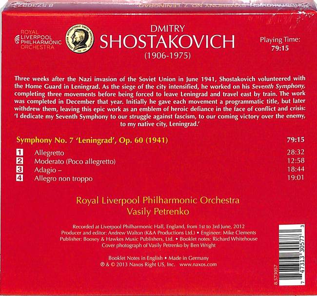 | 1. | Symphony no 7 in C major, Op. 60 "Leningrad" Composer:SHOSTAKOVICH, DMITRI |