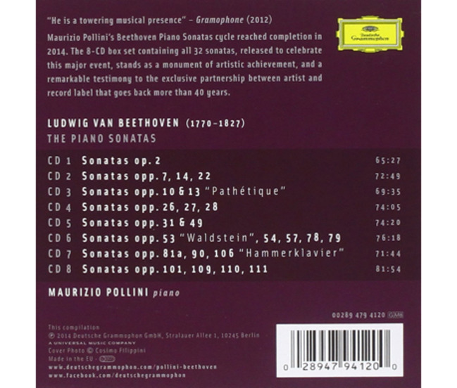 對鋼琴家有著新約聖經地位的貝多芬鋼琴奏鳴曲,波里尼並不躁進地積極錄音,一段時間才推出一張,而正當全世界樂迷思索有生之年波里尼有沒有可能完成一套全集時,終於,最後一塊拼圖完成。這份耗時近40年光景的32首作品,也是DG自80年代初期巴倫波因以來的唯一一套全集。