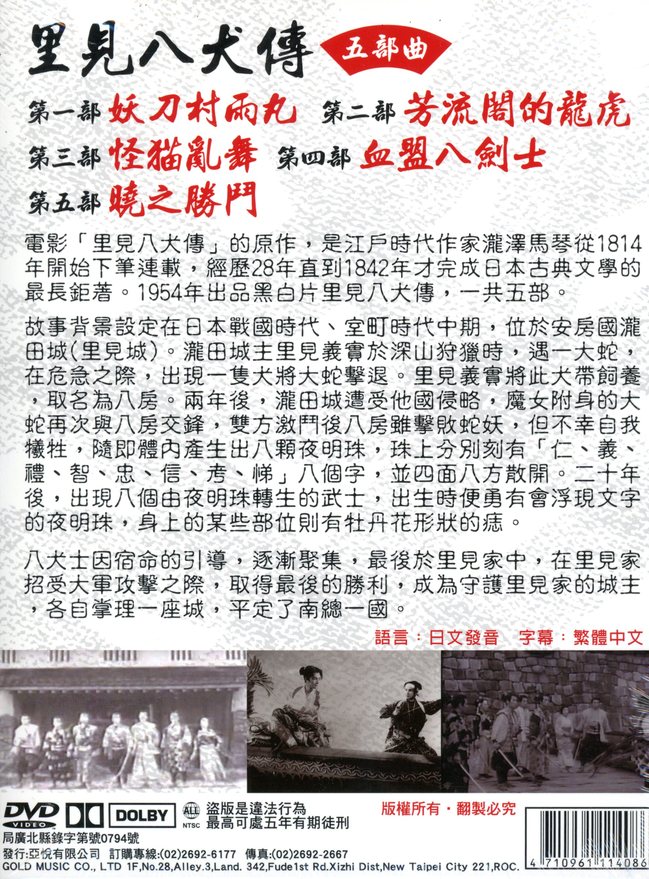 電影「里見八犬傳」的原作,是江戶時代作家瀧澤馬琴從1814年開始下筆連載,經歷28年直到1842年才完成日本古典文學的最長鉅著。1954年出品黑白片里見八犬傳一共五部。