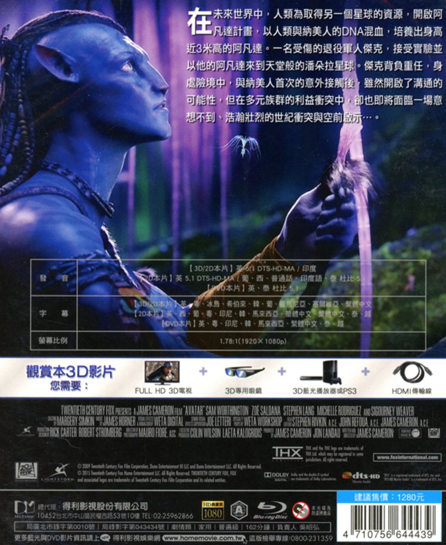 阿凡達 3D+2D+DVD 三碟限定版 BLURAY系統