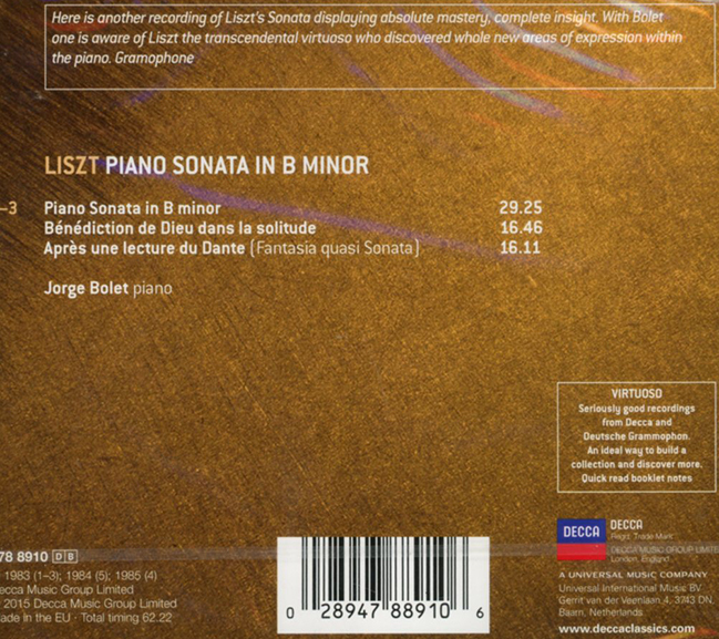 本專輯收錄波雷演奏三部備受肯定的李斯特作品: