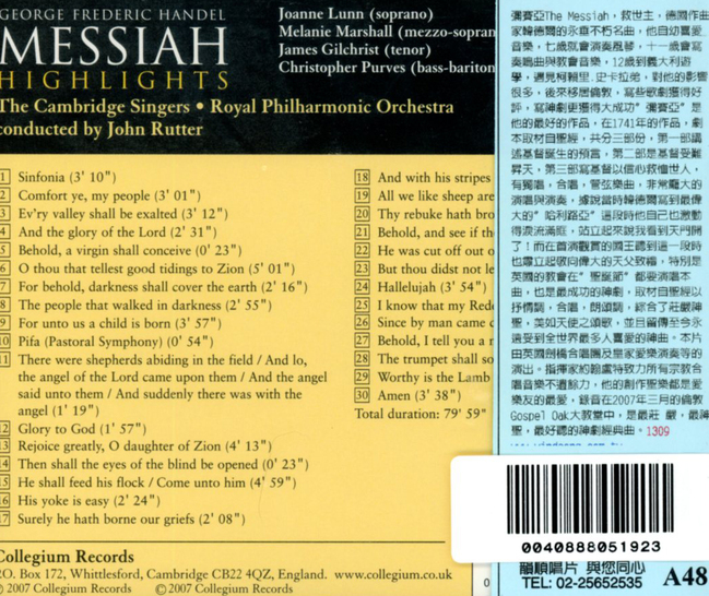 韓德爾 : 彌賽亞精選曲集