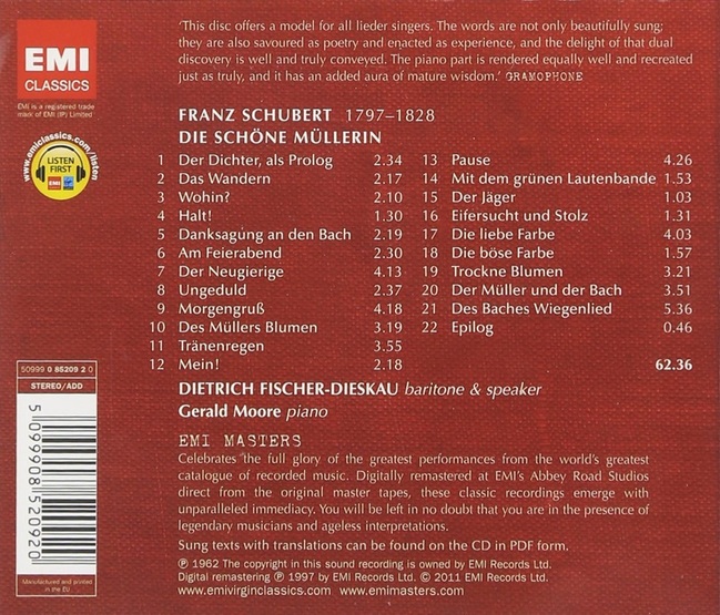 SCHBUERT : DIE SCHONE MULLERIN/DIETRICH FISCHER-DIESKAU, GERALD MOORE