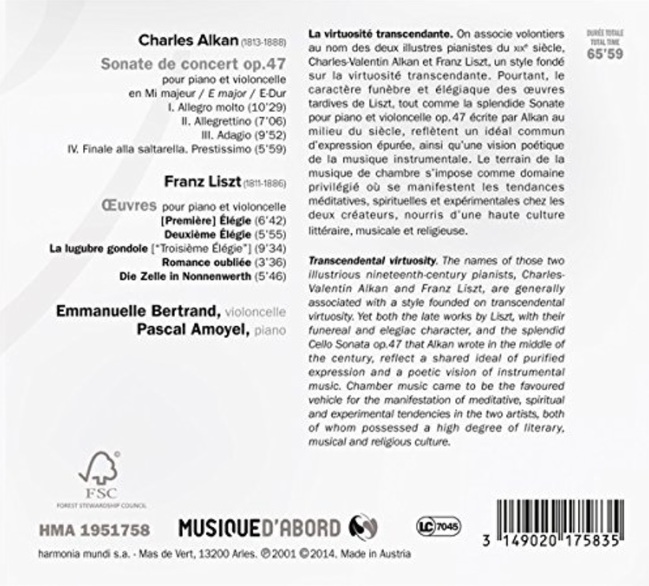 阿爾肯, 李斯特 : 大提琴作品/ALKAN, LISZT : SONATA FOR CELLO AND PIANO/EMMANUELLE BERTRAND, PASCAL AMOYEL
