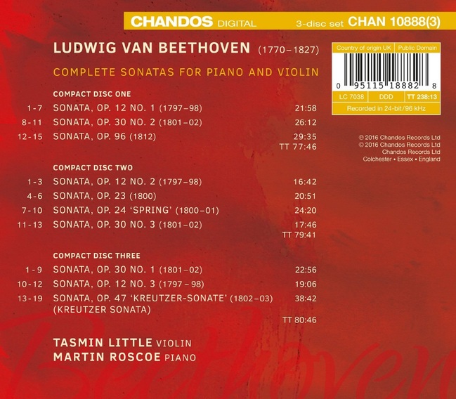 L.V. BEETHOVEN : COMPLETE SONATAS FOR PIANO AND VIOLIN/TASMIN LITTLE, MARTIN ROSCOE (3CD)