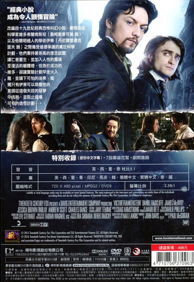 改編自十九世紀經典恐怖科幻小說,由兩大英國當紅男星【X戰警:未來昔日】詹姆斯麥艾維及【哈利波特】系列丹尼爾雷德克里夫搭擋演出。劇情描述 科學家維多弗蘭肯斯坦(詹姆斯麥可維 飾)以及他聰明過人的學徒伊果(丹尼爾雷德克里夫 飾)之間備受道德爭議的科學計劃。他們秉持著崇高的理念試圖讓亡者重生,並加入人性的靈魂至復活的軀體裡,但急於成功的維多,卻早就走火入魔,並鑄下可怕的後果,唯獨只有伊果可以喚醒他的恩師以阻止這場可怕的造怪計劃...。