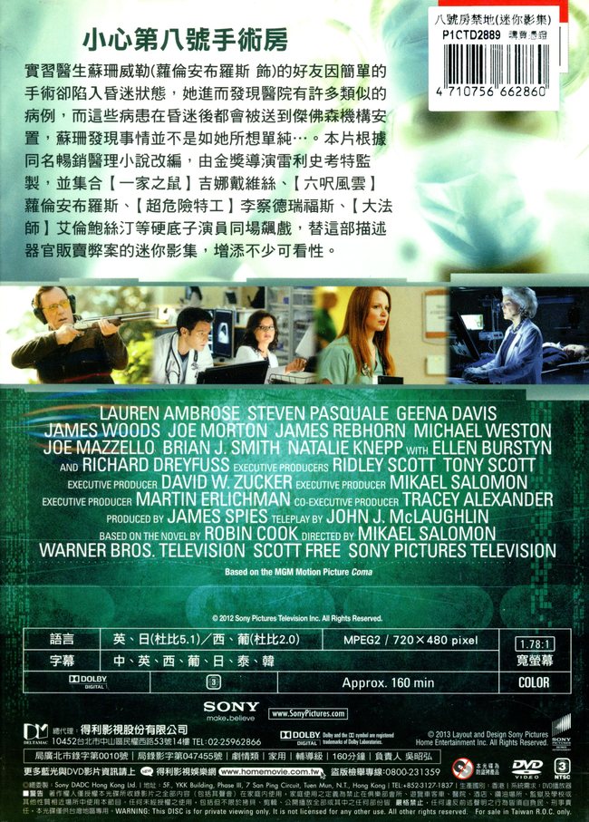 蘇珊菲勒醫師(蘿倫安布羅斯 飾)是位,其好朋友因簡單的手術卻陷入昏迷狀態,然而在她服務的醫院中,也有許多類似的病人,在經過簡單的手術後呈現昏迷,蘇珊發現事情並不是如她所想單純…!根據同名暢銷醫理小說改編, 由金獎導演雷利史考特監製,並由【一家之鼠】吉娜戴維絲、【六呎風雲】蘿倫安布羅斯、【超危險特工】李察德瑞福斯、【大法師】艾倫鮑絲汀等巨星連合演出,這部描述器官販賣弊案的影集,不寒而慄的情節,受到觀眾的歡迎!