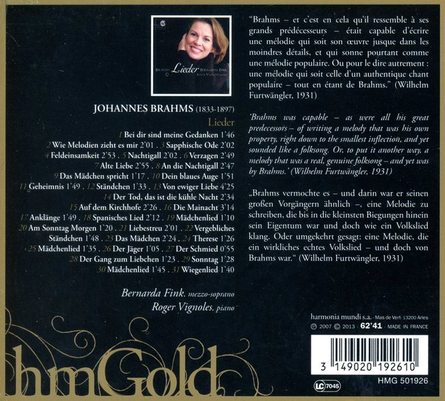JOHANNES BRAHMS : LIEDER/BERNARDA FINK, ROGER VIGNOLES