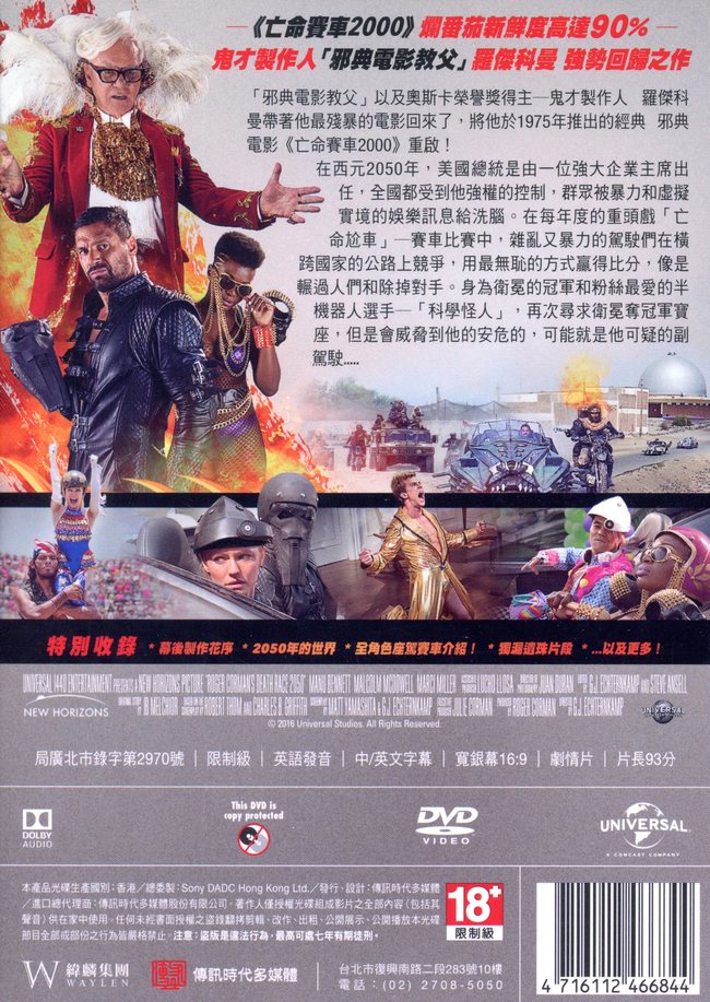 「邪典電影教父」以及奧斯卡榮譽獎得主─鬼才製作人 羅傑?科曼帶著他最殘暴的電影回來了,將他於1975年推出的經典 邪典電影《亡命賽車2000》重啟!