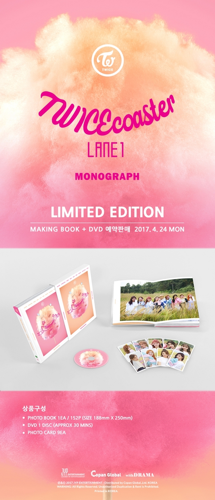 < TWICEcoaster : LANE1 > MONOGRAPH에서는 TWICE만의 밝고 건강한 에너지를 느낄 수 있는 자켓&뮤직비디오 현장을 만나 볼 수 있다.그리고 TWICE 멤버들의 9인9색 매력을 새롭게 느껴볼 수 있는 것은 물론,다른 곳에서 공개되지 않았던 미공개 사진과 영상을 가득 담아 팬들에게 더욱 특별한 선물이 될 예정이다.