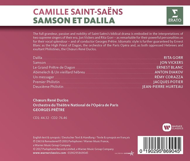 1962年的錄音,指揮普雷特,以及正處於巔峰期的麗塔‧戈爾、維克斯與就像是這套錄音的擎天巨柱,把聖桑音樂中的氣魄、激情、高尚氣質與戲劇性完整呈現出來,但是又依然能表現出強烈的個人特性。