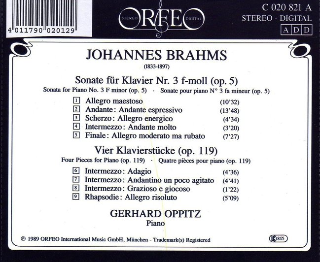 JOHANNES BRAHMS : Sonate Nr. 3 f-moll op.5, Sonata No.3 F minor Op.5