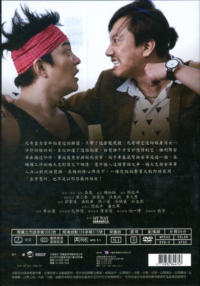 元奇皇后當年秘密逃回韓國,只帶了這套龍鳳鏡,死前將它送給貼身侍女—仔仔的祖奶奶。自從知道了這個秘密,白楚雄千方百計想得到它。雄利用安寧去接近仔仔,事成後竟安排殺死安寧。殺手車基範幫助安寧逃過一劫,在賭場工作的梅大志則因欠下賭債,意外捲入這場寶物之爭。梅大志與安寧等人決心對抗白楚雄,在梅的精心佈局下,一場荒誕的奪寶大戰即將展開,「出乎意料」也不足以形容最終結局!