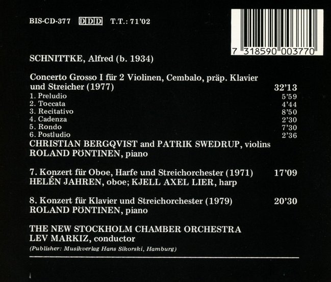 Schnittke : 3 Concertos/THE NEW STOCKHOLM CHAMBER ORCHESTRA, LEV MARKIZ