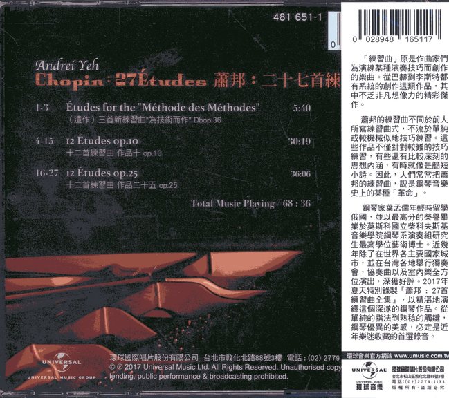 27首練習曲全集』,以精湛地演繹這個深遂的鋼琴作品。從單純的指法到熟稔的觸鍵,鋼琴優異的美感,必定是近年樂迷收藏的首選錄音。