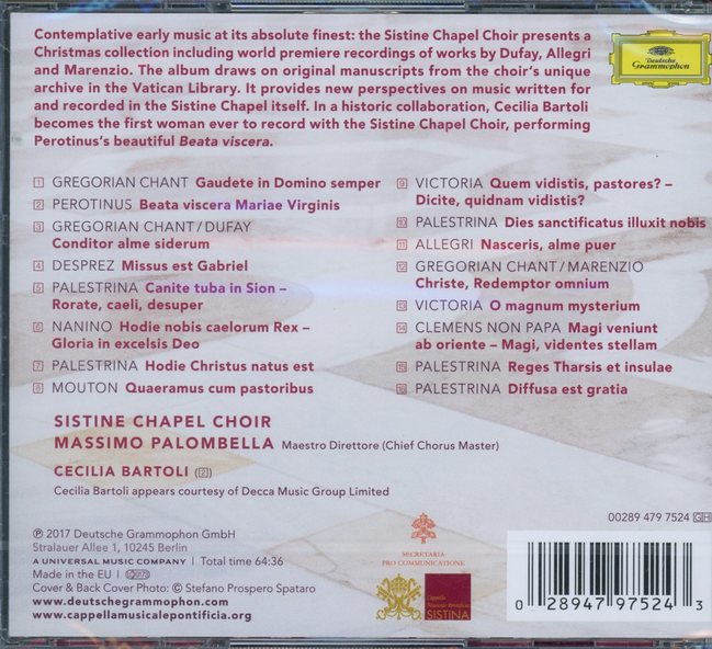 值得一提的是,西斯汀聖堂合唱團邀請了義大利次女高音芭托莉一起錄音佩羅坦《蒙福的肉身》,這也是有史以來,第一次出現女性聲樂家與西斯汀聖堂歌詠團合作錄音。