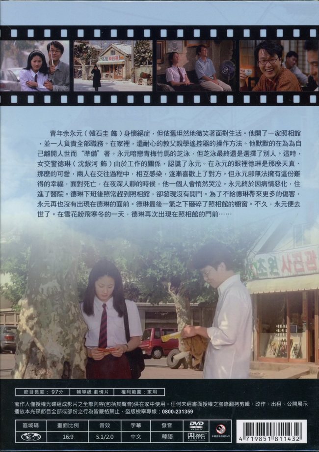青年余永元(韓石圭 飾)身懷絕症,但依舊坦然地微笑著面對生活。他開了一家照相館,並一人負責全部職務。在家裡,還耐心的教父親學遙控器的操作方法。他默默的在為為自己離開人世而“準備”著。永元暗戀青梅竹馬的芝泳,但芝泳最終還是選擇了別人。這時,女交警德琳(沈銀河 飾)由於工作的關係,認識了永元。