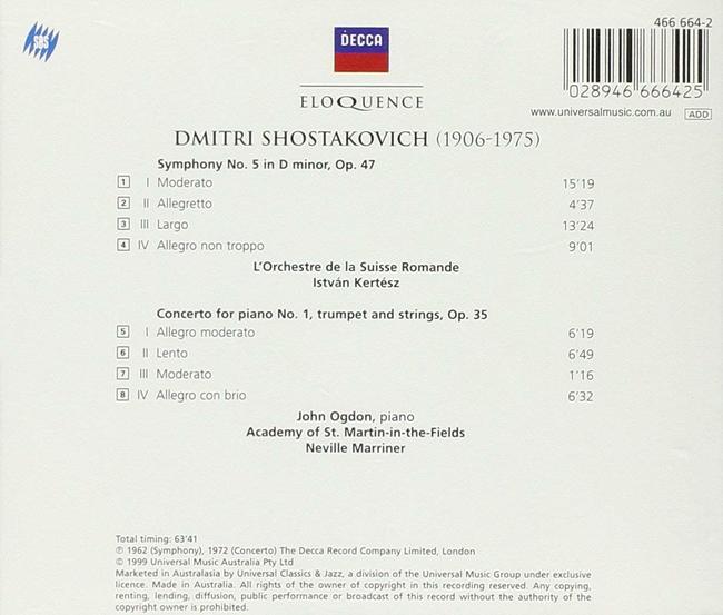 Shostakovich : Symphony No.5 , Piano COncerto No.1