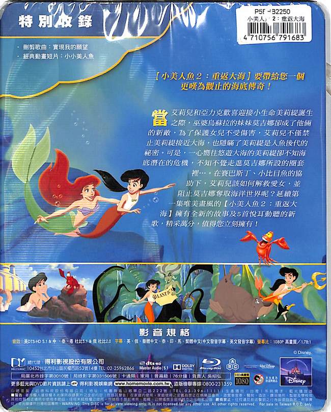 曾經榮獲1989年奧斯卡『最佳電影主題曲』、『最佳原著音樂』兩項大獎的迪士尼第28部經典鉅作【小美人魚】推出續集了,【小美人魚2:重返大海】要帶給您的是一個更嘆為觀止的海底傳奇!
