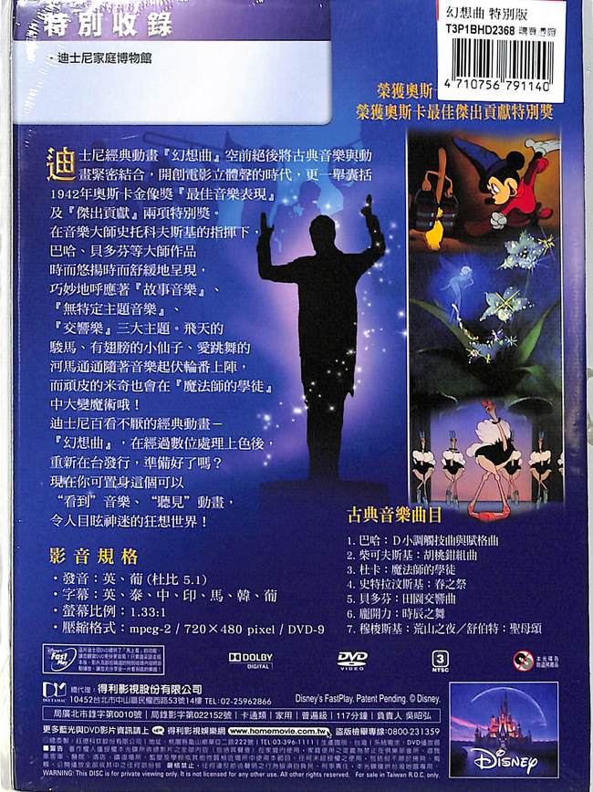 迪士尼百看不厭的經典動畫-【幻想曲】,在經過數位處理上色後,重新在台發行,準備好了嗎?現在你可置身這個可以"看到"音樂、"聽見"動畫,令人目眩神迷的狂想世界!