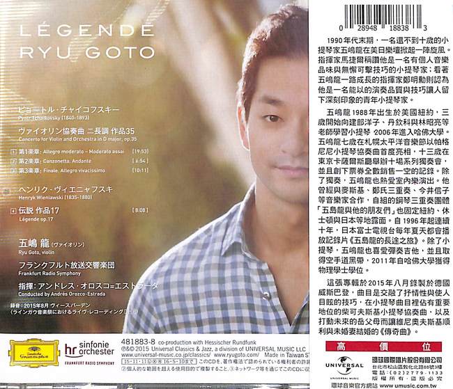 本輯於2015年八月錄製於德國威斯巴登,曲目是交融了抒情性與使人目眩的技巧,在小提琴曲目裡佔有重要地位的柴可夫斯基小提琴協奏曲,以及打動未來的岳父母而讓維尼奧夫斯基順利與未婚妻結婚的《傳奇曲》。