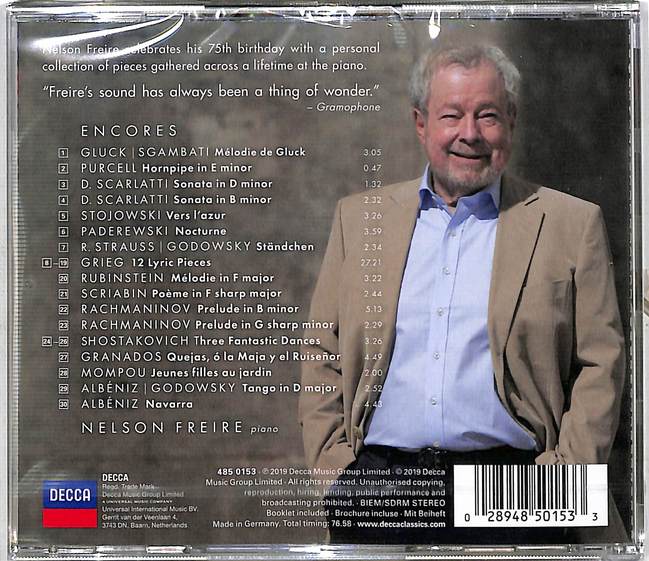 本集是為慶賀巴西鋼琴大師弗萊瑞(Nelson Freire, 1944 - )75歲生日而特別發行,收錄的都是大師特別鍾愛,並在其音樂生涯中經常演奏的安可小品,包含葛利格的《詩意組曲》以及普賽爾、史卡拉第、帕德列夫斯基、郭多夫斯基、魯賓斯坦、史克里亞賓、拉赫曼尼諾夫、葛拉納多斯、阿爾班尼士等作曲家作品。