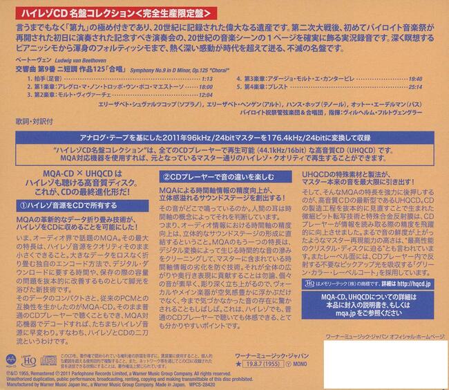 | 4. | SYMPHONY NO.9 IN D MINOR. OP.125 'CHORAL' 3RD MOVEMENT:ADAGIO MOLTO E CANTABILE / Wilhelm Furtwangler |