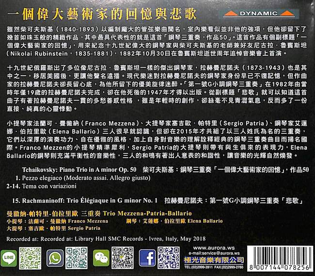 Tchaikovsky: Piano Trio in A minor Op. 50 柴可夫斯基:鋼琴三重奏「一個偉大藝術家的回憶」,作品50