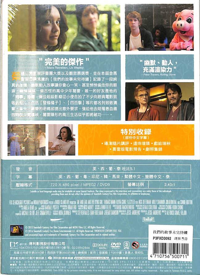 榮獲日舞影展評審團大獎以及觀眾票選獎,並在本屆金馬影展口碑沸騰的【我們的故事未完待續】記錄了一段純真的友情,幽默動人故事讓你會心一笑,甚至悄悄偷走你的眼淚。劇情描述一個古怪的高中少年葛雷,唯一的好友是他的「同事」厄爾,兩位超級影癡從小便合拍了不少向經典電影致敬的短片,包括【發條橘子】、【四百擊】等片都名列致敬清單。某天,葛雷的老媽卻提出意外要求,強迫他去陪罹患血癌的同校少女瑞秋,葛雷隱形的高三生活似乎即將破功??。