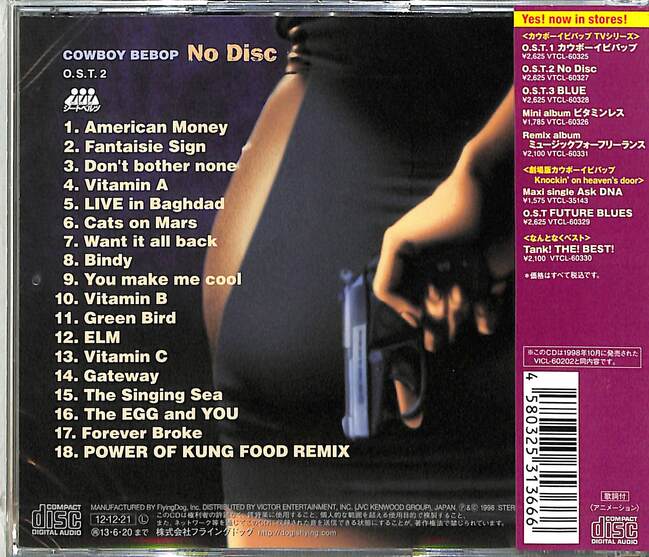 98年より放送のスタイリッシュ・アクション・アニメ『カウボーイビバップ』のサウンドトラックの第2弾。楽曲の制作は菅野よう子、そして演奏は彼女がプロデュースを手がけるシートベルツによるもので、サントラの枠を超えた質の高い一枚だ。