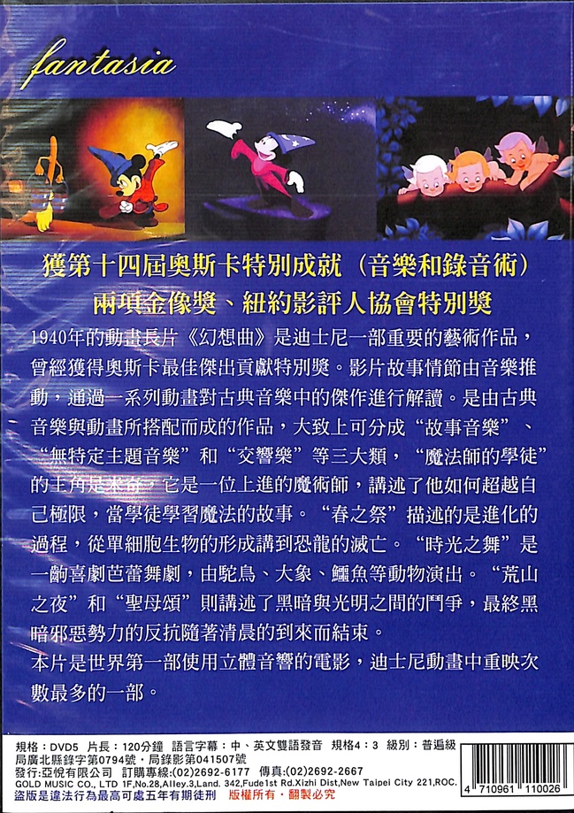 1940年的動畫長片《幻想曲》是迪士尼一部重要的藝術作品,曾經獲得奧斯卡最佳傑出貢獻特別獎。