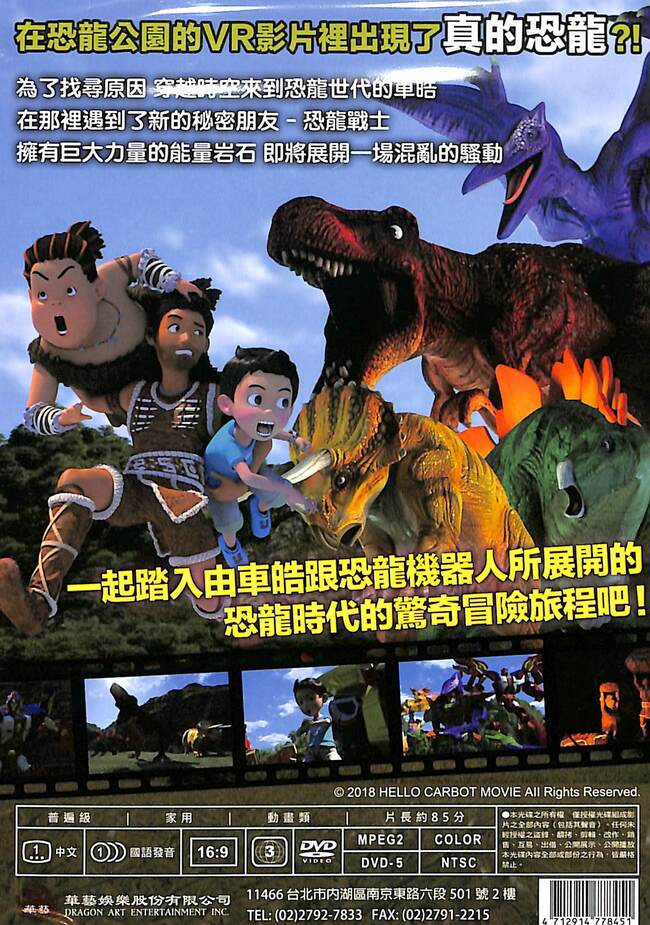 一起踏入由車皓跟恐龍機器人所展開的恐龍世代冒險旅程吧! 發音:國語 字幕:繁體中文、隱藏 螢幕:16:9 音效:二聲道 片長:85分
