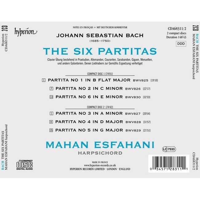 巴哈《六首鍵盤組曲》向來被視為鍵盤音樂的里程碑,既是對傳統的總結,也是對未來的挑戰。大鍵琴家曼漢˙伊斯法哈尼在這張專輯中,以獨到的詮釋觀點與鮮明的音樂個性,展現出這套作品的多層面風貌。