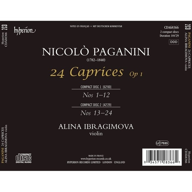 The transcendental heroics of Paganini's Caprices have presented the ultimate test for generations of violinists; Alina Ibragimova's accounts of this most exclusive repertoire join a select few of the most celebrated.