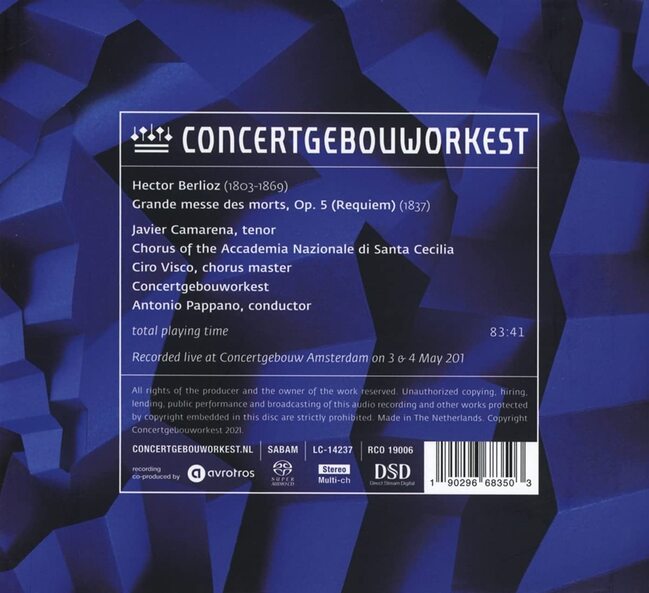 此份錄音是阿姆斯特丹皇家大會堂管弦樂團,邀請擅長歌劇指揮的指揮家帕帕諾,與其帶領的聖西西莉亞音樂院合唱團一同演出,獨唱的男高音則是來自墨西哥的卡馬雷納。