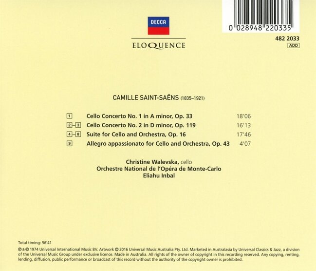 Camille Saint-saens : Cello Concertos Nos. 1 &2 ; Suite for Cello Op.16