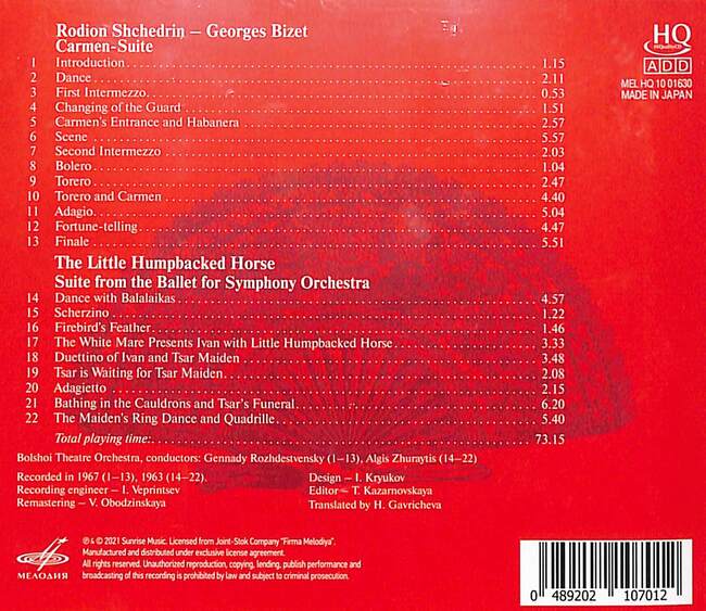 Rodion Shchedrin : Carmen-Suite ; The Little Humpbacked Horse (HQCD)