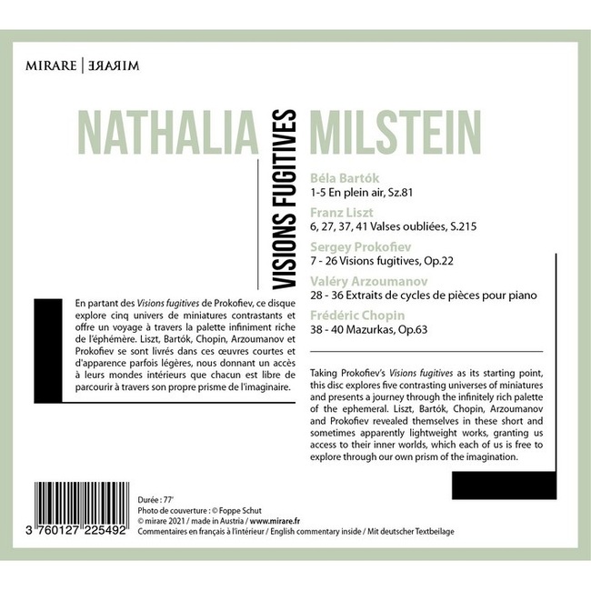 Taking Prokofievs Visions fugitives as its starting point, this disc explores five contrasting universes of miniatures and presents a journey through the infinitely rich palette of the ephemeral. Liszt, Bartok, Chopin, Arzoumanov and Prokofiev revealed themselves in these short and sometimes apparently lightweight works, granting us access to their inner worlds, which each of us is free to explore through our own prism of the imagination.