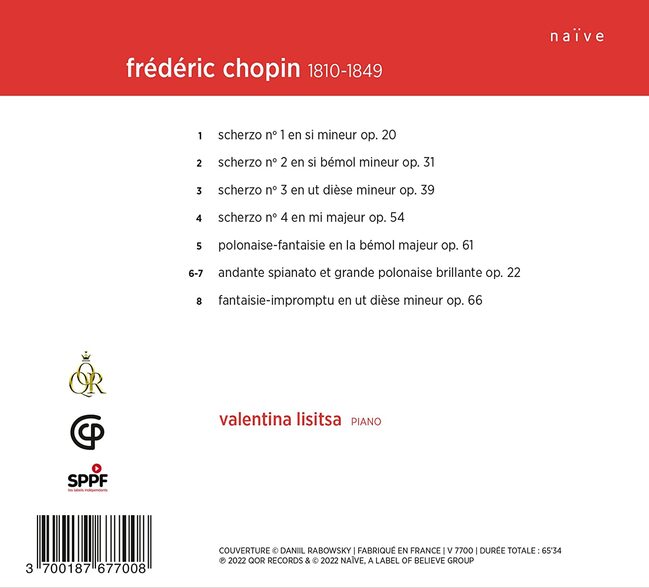 A new recording of Chopin's complete legendary Scherzos by leading pianist Valentina Lisitsa – 'a set full of contrasts and characters, including some of the most beautiful melodies ever written'. The famous Andante Spianato and other works complete this new milestone recording on naive. Newly-signed leading artist on naive, a label of Believe, pianist Valentina Lisitsa offers a new performance of Chopin's four Scherzos, her core repertoire since the beginning of her career. Those long, highly virtuosic and expressive works are milestones in Chopin's output and were composed over a decade, between 1831 and 1842.