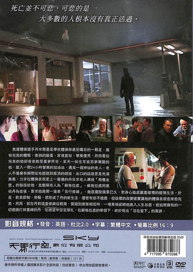 奧運體操選手丹米爾曼是學校體操隊最受矚目的一顆星,擁有完美的體態、俊俏的臉蛋、家境富裕、學業優秀,然而看似完美的他卻夜夜飽受噩夢所苦。某天一如往常被惡夢驚醒的他,踏入一間24小時營業的加油站,遇見一個神祕的老人。老人不僅擁有瞬間從地面跳到屋頂的絕技,出口的話語更是充滿奧義。力求在體操表現更上一層樓的丹苦求老人傳授「飛簷走壁」的秘技給他,並戲稱老人為「蘇格拉底」。蘇格拉底同意收丹為徒後,要求他展開一連串「苦行修練」,徹底擺脫積累已久,對身心造成嚴重破壞的縱情生活。於是,飲食節制、勞動、禁慾成了丹的新生活,儘管有些不適應,但這樣的改變確實讓他的體操表現愈來愈完美。然而,就在丹對這套修練從輕蔑、質疑到漸漸相信時,一場車禍卻將他推入人生谷底。被迫將擁有的一切通通打掉重練的丹,在絕望中苦苦掙扎,終於蘇格拉底的帶領下,終於悟出「活在當下」的真諦。