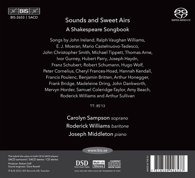 After many acclaimed releases on BIS, including Album fur die Frau a collection of songs by Clara and Robert Schumann, A Soprano's Schubertiade and Elysium two Schubert recitals, as well as a number of themed recitals, some of which were named 'Recording of the Month' by MusicWeb International and 'CD Tipp' by BR Klassik Carolyn Sampson and Joseph Middleton are joined here by renowned British baritone Roderick Williams